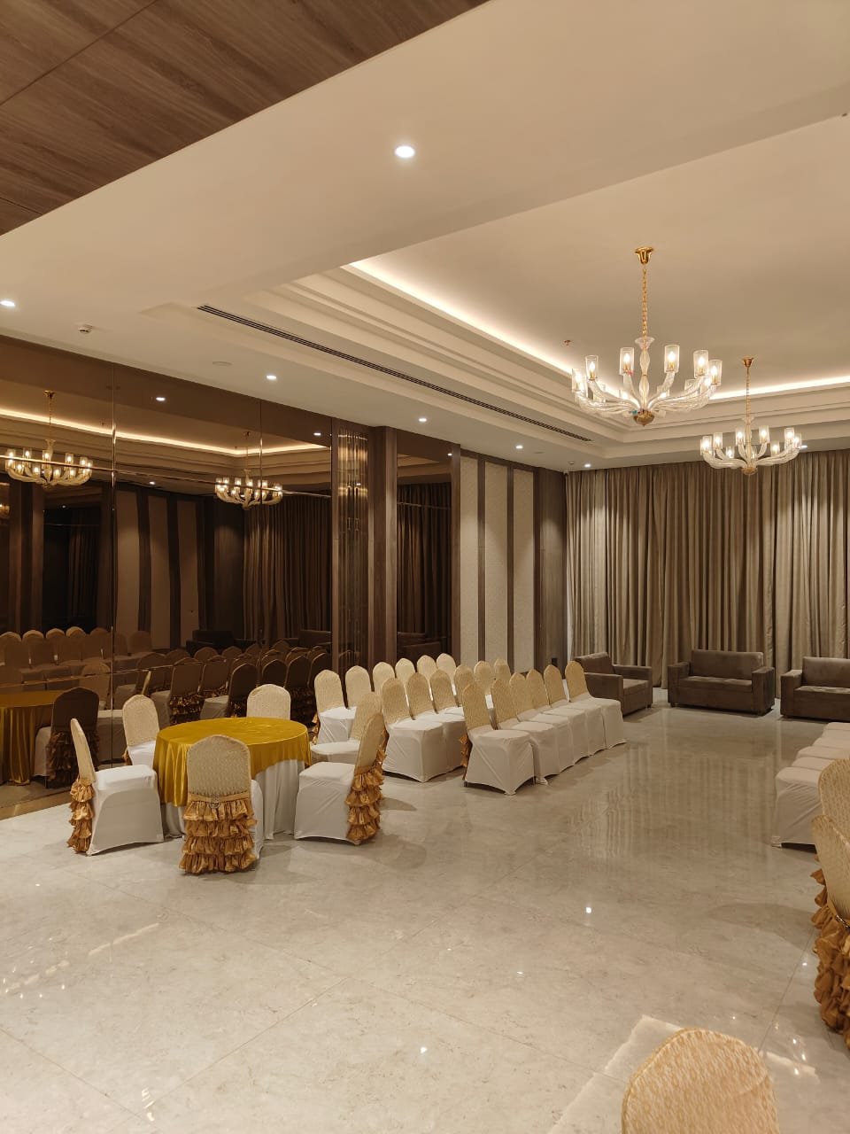 The beautifully landscaped lawn provides a picturesque outdoor venue for weddings, receptions, sangeet, and cultural ceremonies. It’s perfect for open-air celebrations under the stars.